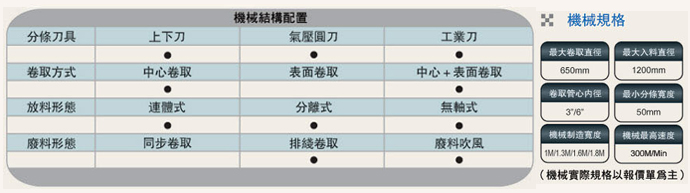 成品卷取方式:可配備板條式氣壓軸及滑差式卷取軸,適用更多材料的范圍,換軸方式經(jīng)特殊設(shè)計(jì),可以隨時(shí)更換。